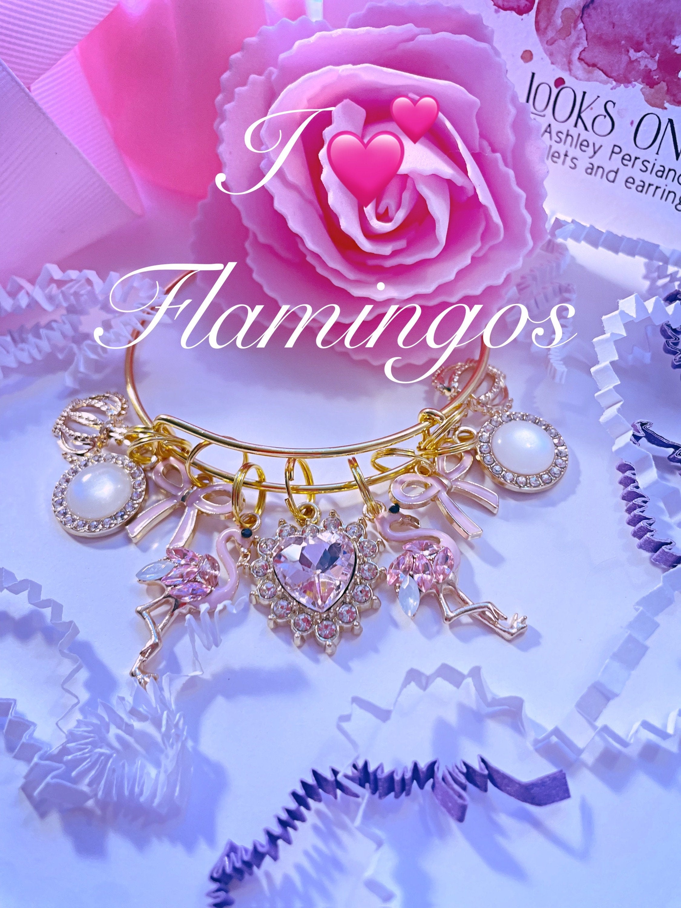 Anchor gold charm bangle bracelet with link anchors, summer bangle , pink anchors